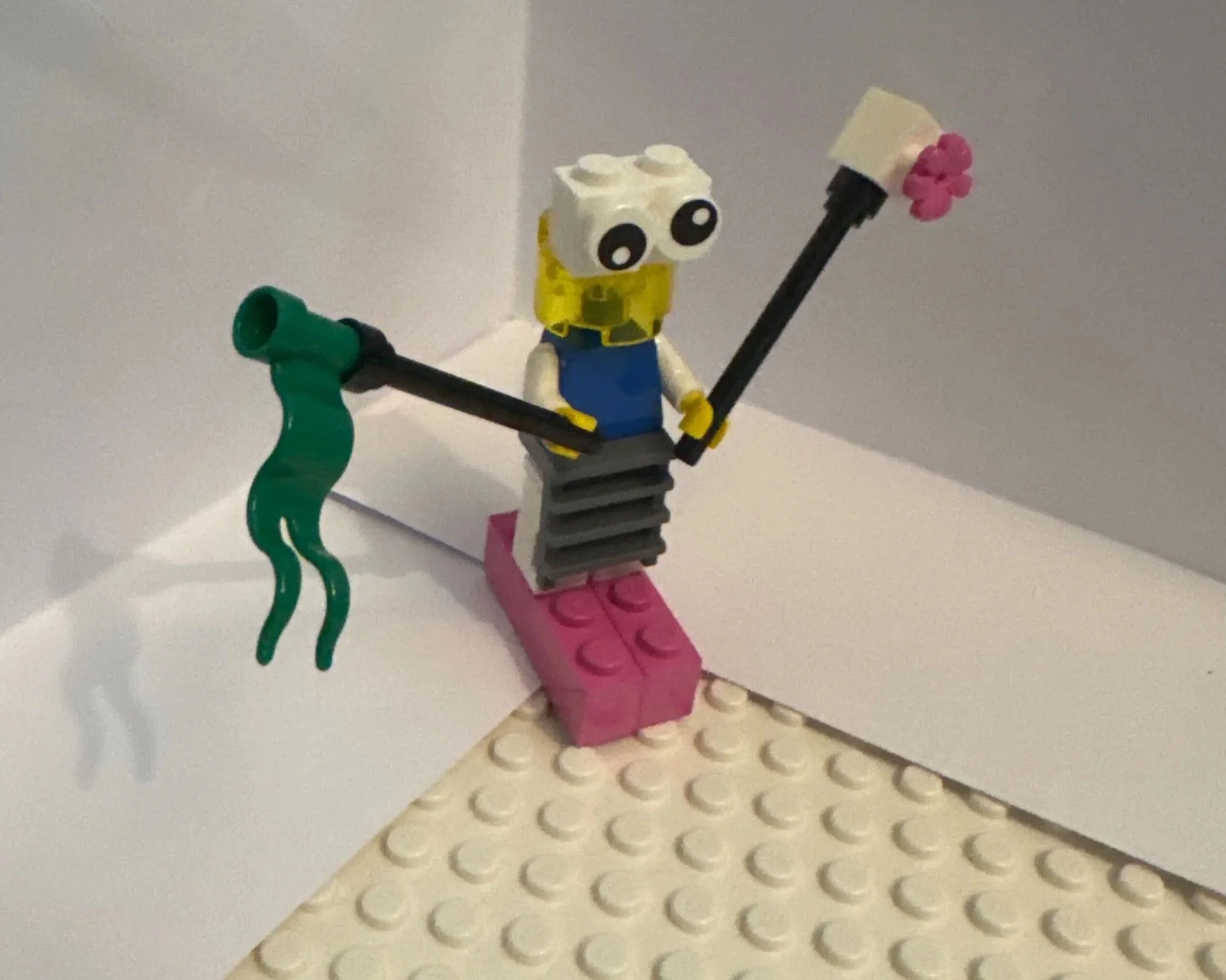 En enkelt rød kloss kan bli et isfjell. En rosa blomst kan representere empatisk utfordring. En figur som ser bort kan symbolisere det teammedlemmet som ikke føler seg hørt. Det er ikke arkitektur, men metafor. Og metaforene inviterer til nysgjerrighet.